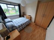 This modern four-bedroom house share offers a furnished bedroom for single occupancy. The bedroom measures 3.5 x 2 meters and is well-equipped with a single bed, wardrobe, and new chest of drawers. C…
