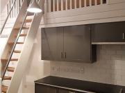 ...This modern split-level studio flat on the fourth floor offers an upper bedroom and a cozy downstairs kitchen/living area, complemented by a bathroom with a shower. The flat is bright and features wo…...
