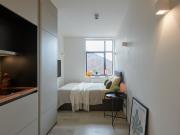 ...studio offers a high-quality living experience, thoughtfully designed for comfort and convenience. The studio features a sleek integrated kitchen with modern appliances, a stylish private shower room, and a flat-screen TV, with complimentary high-spe...