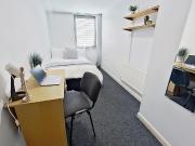 ...duplex flat for four students to share featuring a good size lounge and a very large separate kitchen.All bedrooms are situated on the 1st floor and there is two shower rooms with WC and wash basin. The complex benefits from the added security of 24h...